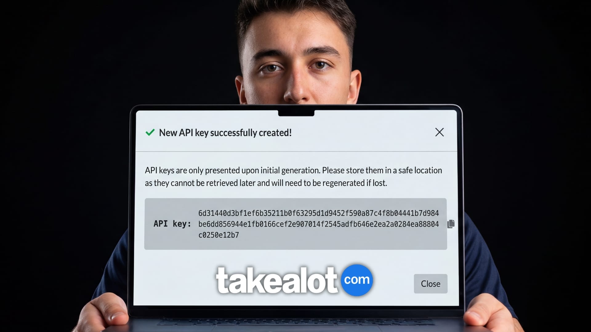 Copy the entire Takealot API key immediately — include all characters, no extra spaces. This is your only chance to see this key. Once you close the popup, your Takealot API key cannot be retrieved.